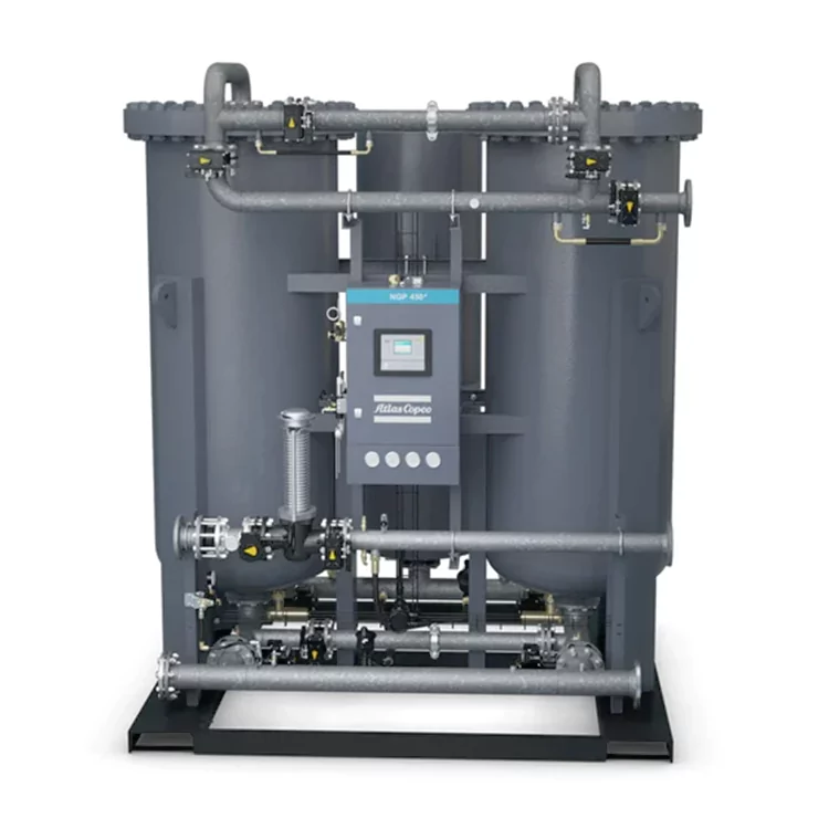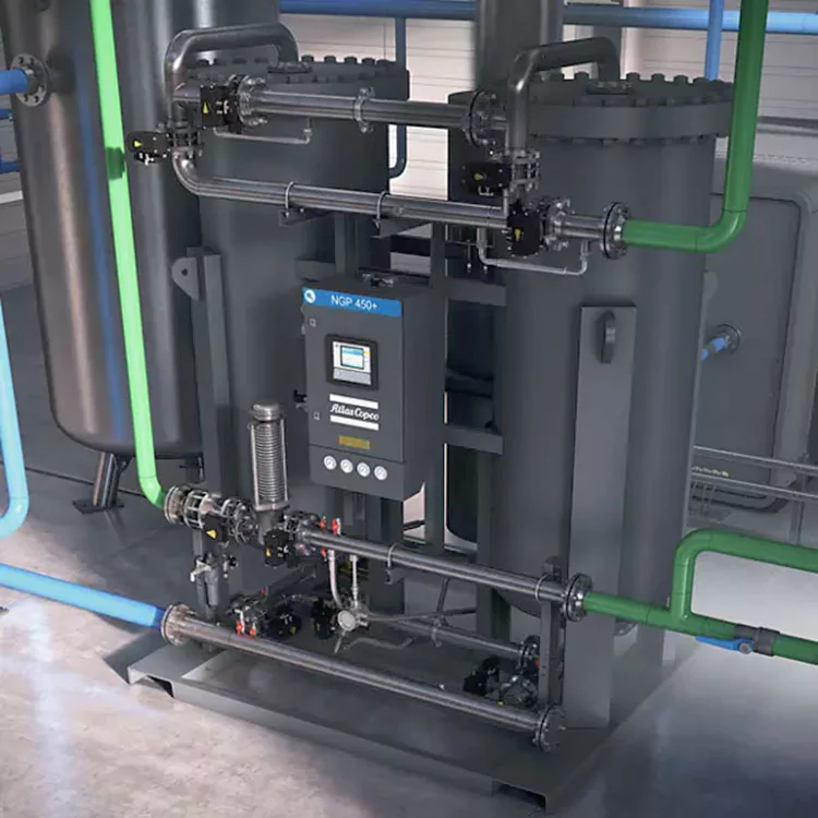 아트라스콥코의 NGP/NGP+ 질소 발생기는 압력 변동 흡착 기술을 사용하여 압축 공기의 다른 분자로부터 질소 분자를 분리합니다. 산소, CO2, 수증기 및 기타 가스가 흡착됩니다. 그 결과 발전기 출구에는 사실상 순수한 질소가 생성됩니다. 그만큼.