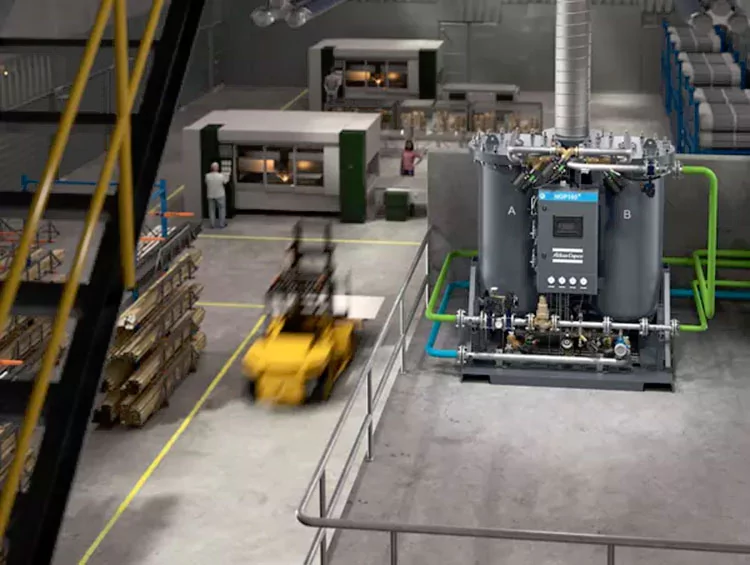 Atlas Copco의 NGP/NGP+ 질소 발생기는 PSA(압력 변동 흡착) 기술을 기반으로 원하는 순도의 질소를 연속적으로 공급합니다.